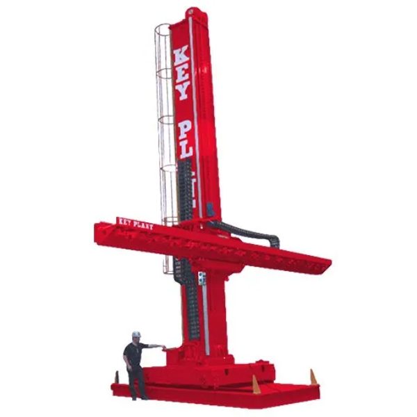 The column is mounted on an all rigid fabrication base complete with machined guideways for elevation of boom-carriage. Robust fabricated steel boom carriage counterbalanced and fitted with a safety device against counterbalance chain breakage. We have two ropes fitted on the Column Control up/down. If one rope was cut then the other rope has the capability and safe working load to hold the boom in position.